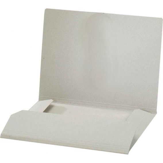 A folder made of light gray cardboard with 3 inner flaps and a rubber band closure.